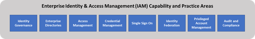 Como práctica de seguridad, la IAM suele incluir ocho áreas principales de capacidades, procesos y tecnología: