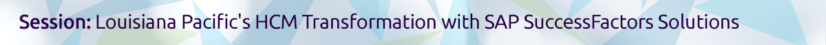 When:Tues. 01:30PM – 01:50PMWhere:Industries IN821Louisiana Pacific’s HCM Transformation with SAP SuccessFactors Solutions. Click here to learn more about this session and add to your event calendar.