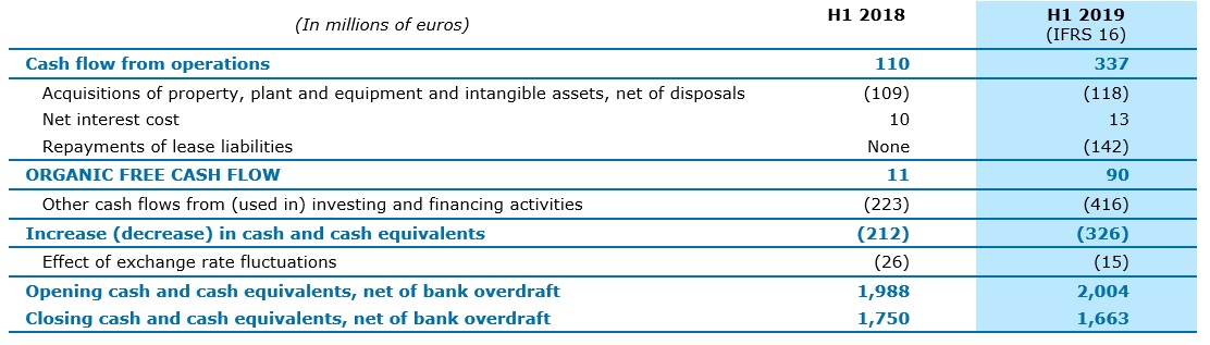 [2] The impacts of the application of IFRS 16 at January 1, 2019 and the resulting change in the organic free cash flow and net debt definitions are presented in the appendix to this press release.