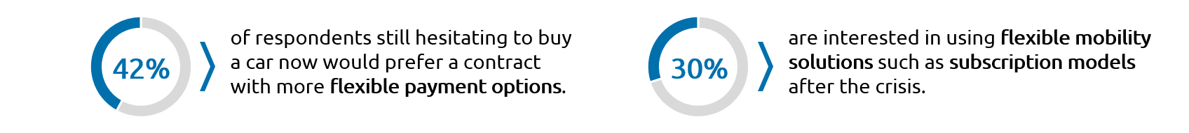 Given that financial insecurities are currently the most important reason for postponing a car purchase, OEMs and Captives can convince customers in their purchase decisions by offering customers more flexibility in payment and mobility measures:
