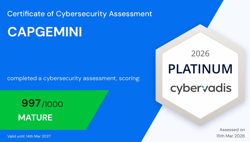 Capgemini has been awarded the CyberVadis prestigious Platinum Medal for the third consecutive year.