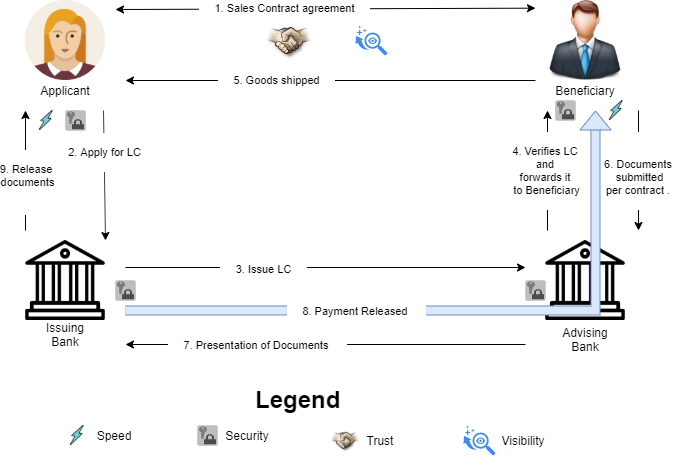 In global trade, LC is the commonly used trade finance instrument to ensure payments of goods and services. LCs are used in 11–15% of the global trade, accounting to over a trillion dollars per year.