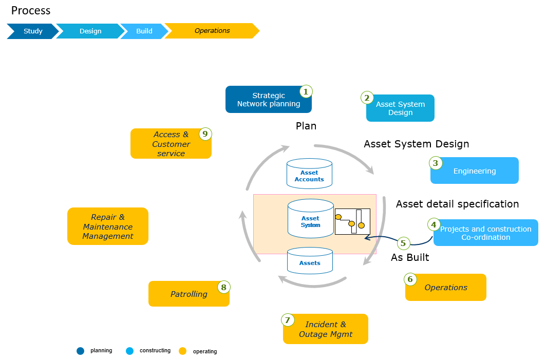 In an earlier paper, the GIS-centric Enterprise, we argued that geographic information system (GIS) software is a key component of the enterprise ICT infrastructure for network operators, specifically for its ability to manage topological relationships via a graphical interface. Let’s rephrase the arguments in the perspective of an asset system model lifecycle.