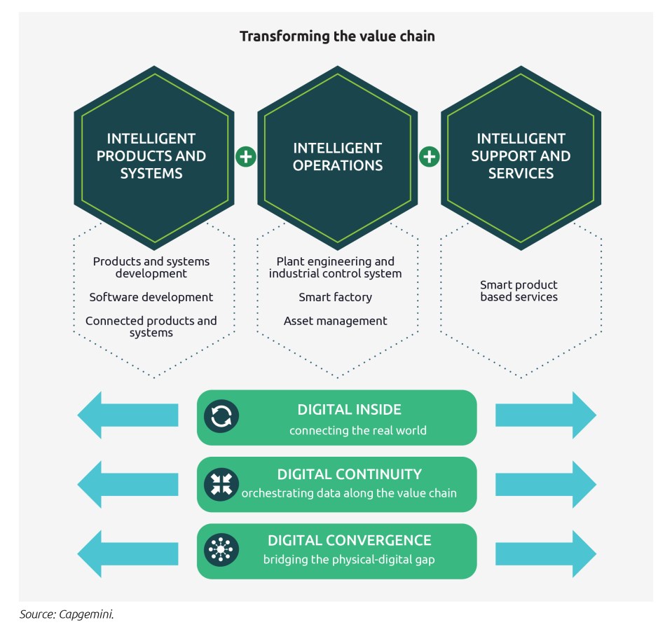 Products, processes, services, operating models, and even business models are all undergoing a transformation. At Capgemini, we call this new era of transformation “Intelligent Industry”: Intelligent Industry is the next generation of digital transformation. It is about fostering synergies between the digital and engineering spheres to help companies build intelligent products, operations, and services, at scale.