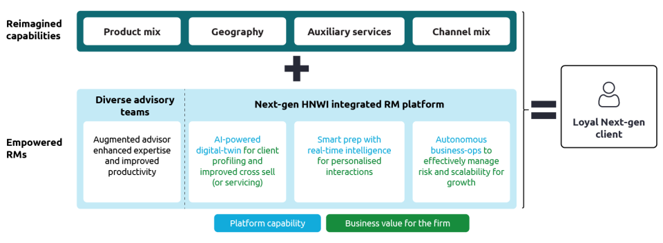 • Evaluating digital capabilities. As Next-gen HNWIs expect seamless, convenient digital channels for real-time access to tailored and relevant information, determine whether your offerings need a refresh. Similarly, consider whether your RM platform lets advisors deliver hyper-personalized, omnichannel experiences quickly and efficiently.