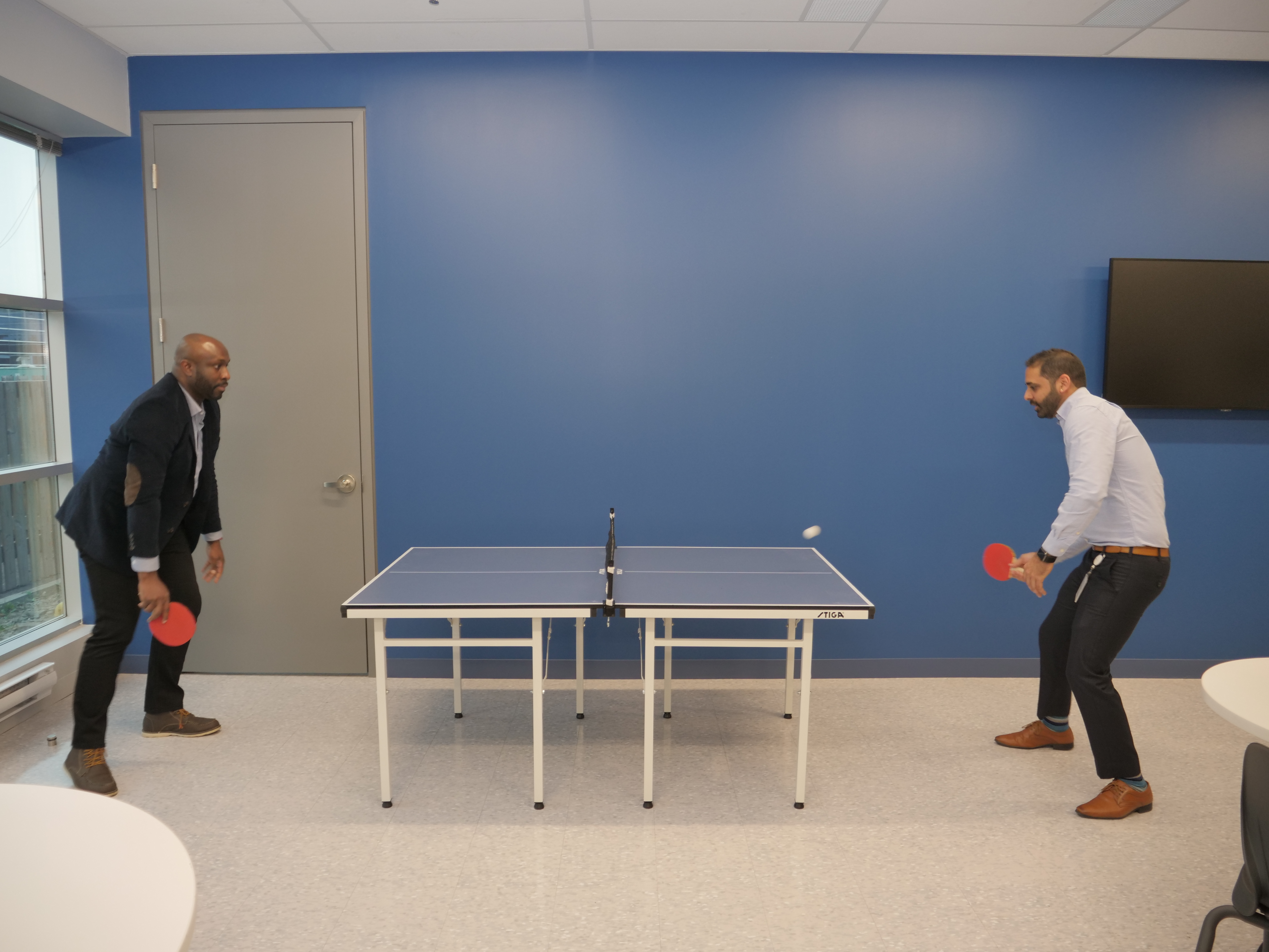 Nous travaillons avec acharnement, mais nous aimons aussi nous amuser. Nos bureaux offrent à nos employés la possibilité de se réunir et de participer à des activités ludiques, par exemple en défiant un collègue à une partie de ping-pong pour une compétition amicale.