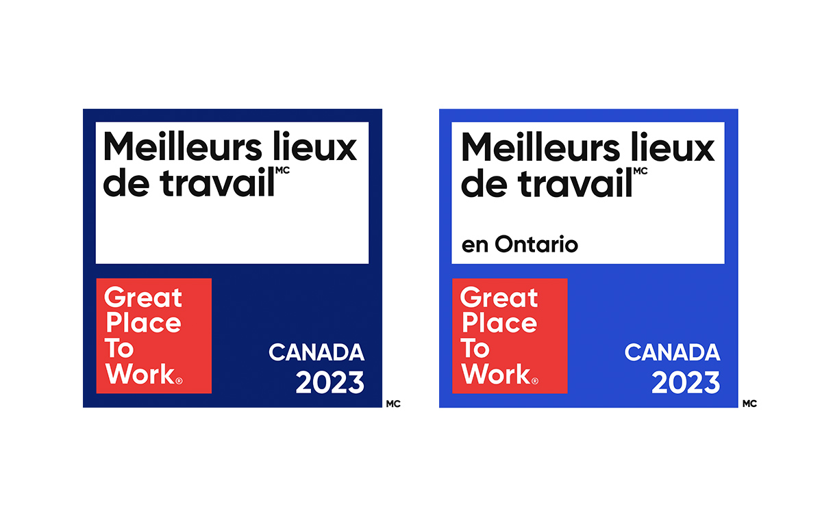 Nous sommes fiers de figurer sur les listes 2023 des Meilleurs lieux de travail au Canada et en Ontario, reconnues par Great Place to Work.