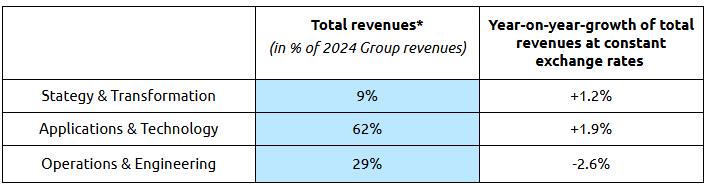 Total revenues of Applications & Technology services (62% of 2024 Group revenues and Capgemini’s core business) were up +1.9% year-on-year.