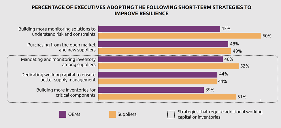 This is reflected by the findings of our recent research paper on the automotive supply chain. Our research reveals that, although automotive companies have – to some extent – stabilized their supply chains and are now better prepared to deal with a ‘black swan’ event like the COVID-19 pandemic, this stability has mainly been achieved by increasing inventories and re-locating some operations and/or preferred points of supply to closer locations.