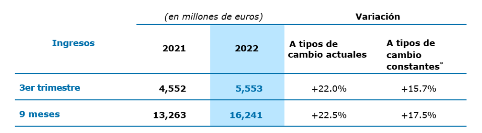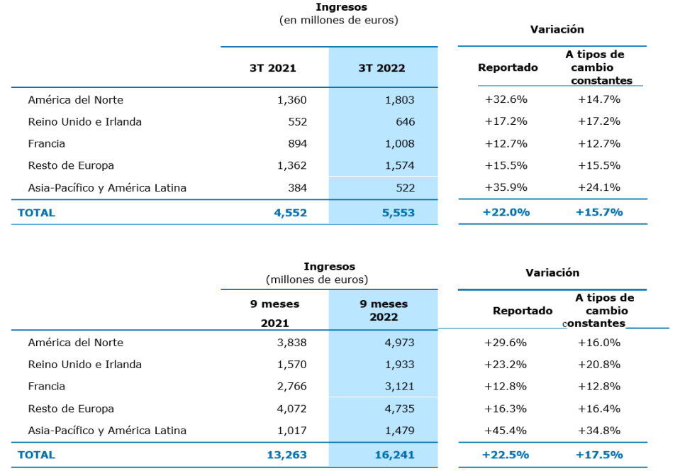 • Crecimiento de ingresos de +14% a +15% en moneda constante (objetivo planteado al publicar los resultados semestrales el 28 de julio de 2022);