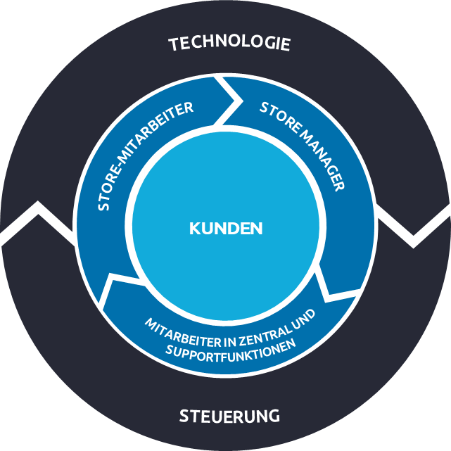 Abbildung 1: Der Einsatz der richtigen Technologie und einer entsprechenden passgenauen Steuerung unterstützt die Mitarbeiter im operativen Alltag im Store und hilft bei der effizienten Umsetzung der Prozesse ohne die Kunden aus den Augen zu verlieren
