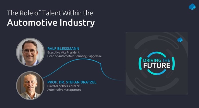 Im Podcast „Driving The Future“ sprechen Ralf Blessmann, Leiter des Automobilsektors bei Capgemini in Deutschland und Professor Dr. Stefan Bratzel, Direktor des Center of Automotive Management (CAM), darüber, wie Automobilhersteller (OEMs) ihren Weg in eine Zukunft finden können, die Technologie, Nachhaltigkeit und Mobilität vereint, und welche entscheidende Rolle talentierte Nachwuchskräfte dabei spielen.