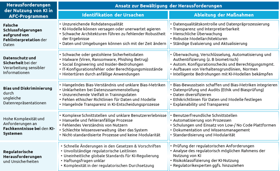 Abbildung 2: Ansatz zur Bewältigung der Herausforderungen bei der Nutzung von KI in AFC-Programmen2,3,4,5,6