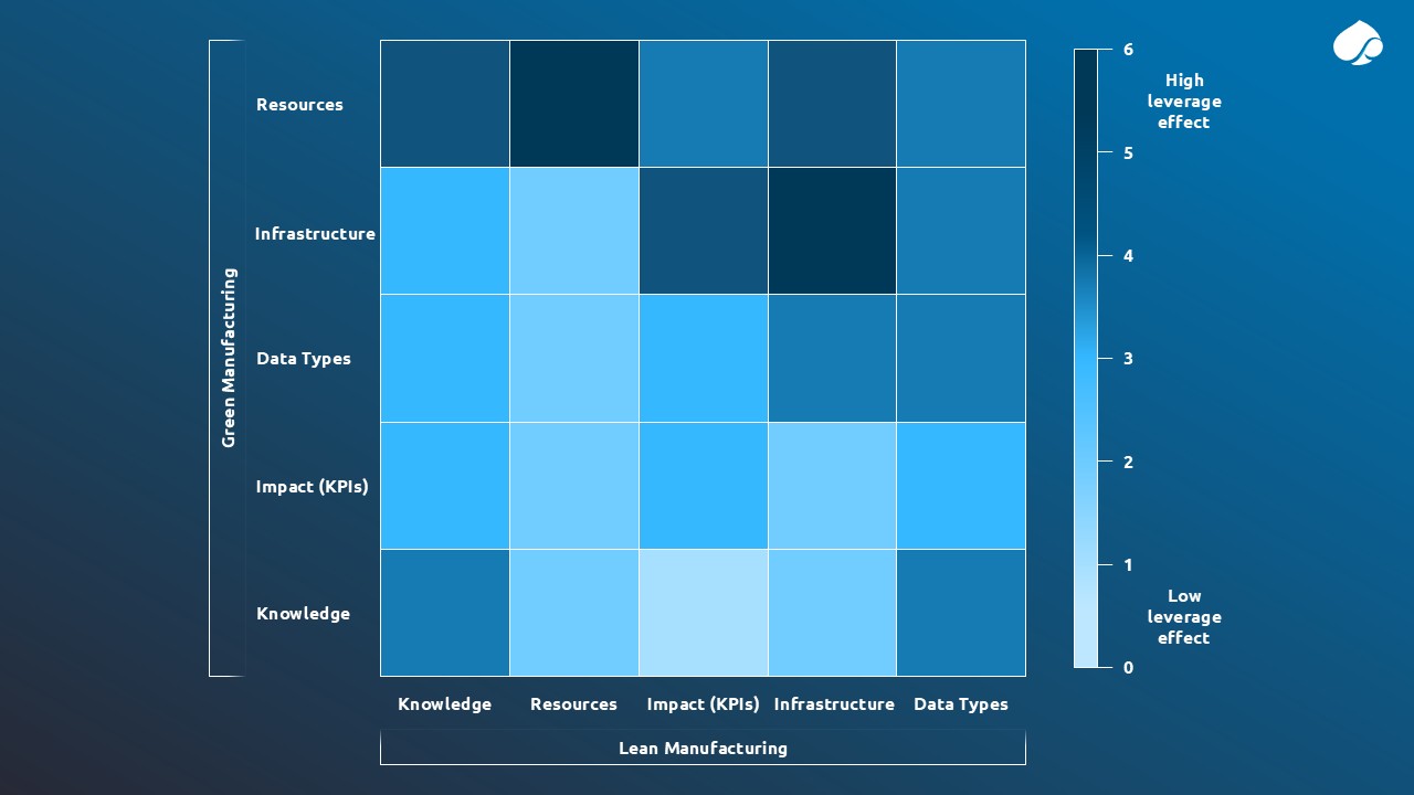 Abbildung 2: Green Manufacturing Heat Map zur Visualisierung von potenziellen Hebeleffekten durch Data & AI auf Lean- und Green Manufacturing