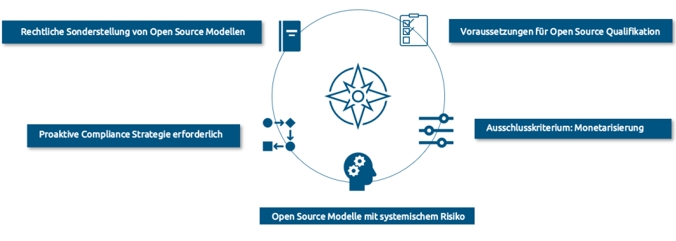Open Source Modellen wird im AI Act sowie im Code of Practice eine Ausnahmestellung eingeräumt: Anbieter solcher Modelle sind von den Pflichten nach Artikel 51 bis 56 AI Act befreit. Der Code of Practice sowie die begleitenden Guidelines der Kommission (https://digital-strategy.ec.europa.eu/en/library/guidelines-scope-obligations-providers-general-purpose-ai-models-under-ai-act) ist auf Open Source Modelle entsprechend nicht anwendbar. Allerdings kann nicht davon ausgegangen werden, dass Open Source Modelle gänzlich out of Scope des AI Acts lägen. Welche Ausnahmen und Gegenausnahmen gelten werden im Folgenden dargestellt.