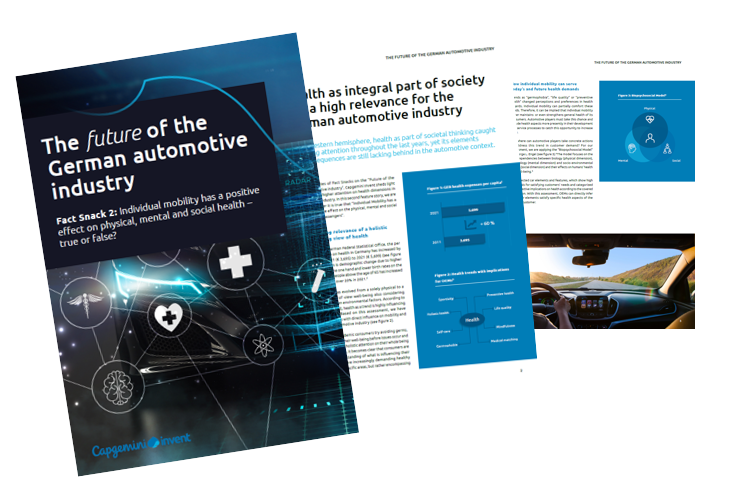 Entdecken Sie in unserer Fact Snack-Serie unsere Sicht auf die Zukunft der deutschen Automobilindustrie. In Teil 2 tauchen Sie ein in die spannende Entwicklung hinsichtlich eines erweiterten Gesundheitsverständnisses, das wichtige Fragen aufwirft: Welche Rolle wird das Auto im Kontext der Gesundheit zukünftig spielen? Wie wirkt sich Individualmobilität auf das ganzheitliche Wohlbefinden aus? Und welche Faktoren können deutsche Automobilhersteller ganz konkret beachten, um den wachsenden Kundenbedürfnissen gerecht zu werden? ​
