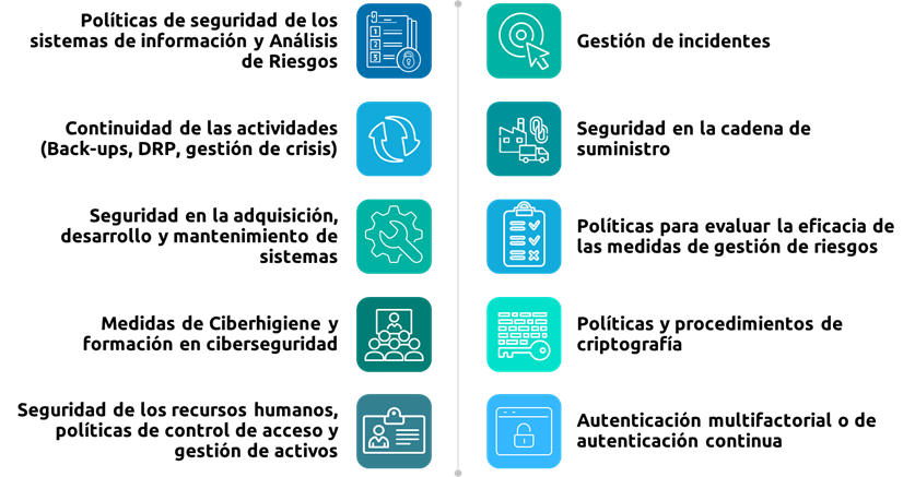 La directiva NIS2 establece que las entidades esenciales e importantes deben implementar las medidas técnicas, operativas y de organización adecuadas y proporcionadas para gestionar los riesgos relacionados con la seguridad de los sistemas de redes y de información utilizados en sus operaciones o en la prestación de sus servicios con el objetivo de prevenir o minimizar las consecuencias de los incidentes en los destinatarios de sus servicios y en otros servicios. Al establecer estas medidas, las entidades deberán considerar su nivel de exposición, su tamaño y la probabilidad de ocurrencia, así como la gravedad de la posible materialización de una perturbación.