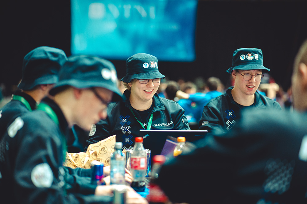 The Finnish country team in action. Contestants were challenged in solving tasks across highly technical domains such as web security, mobile security, crypto puzzles, reverse engineering, hardware hacking, and forensics. Photo: Emil Nyeng / NTNU