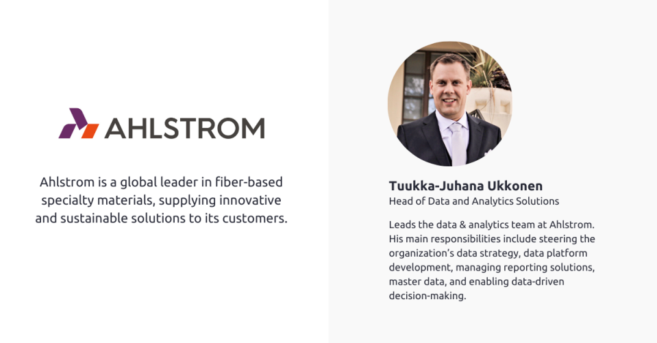 – Tuukka-Juhana Ukkonen, Head of Data and Analytics Solutions, Ahlstrom