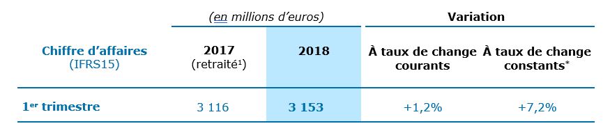 [1] Sauf mention contraire, les chiffres d’affaires 2017 présentés dans ce communiqué sont retraités de l’impact de l’application de la norme IFRS 15 au 1er janvier 2018. La réconciliation entre les données historiques publiées et les données IFRS 15 est fournie en annexe de ce communiqué.