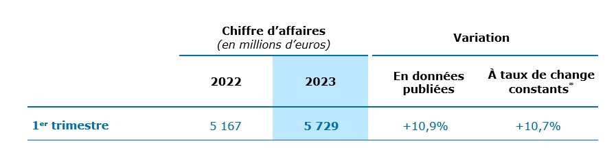 • Chiffre d’affaires de 5 729 millions d’euros, en croissance de +10,9% à taux de change courants et +10,7% à taux de change constants*