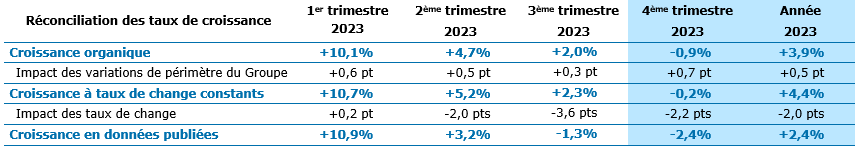 Le Groupe est bien armé pour continuer d’améliorer sa performance en 2024 alors que l’environnement devrait rester peu porteur au premier semestre. Cette année encore, le Groupe prévoit de croître, avec un point bas de la croissance au premier trimestre, de renforcer sa marge opérationnelle et de maintenir à un niveau élevé sa génération de free cash-flow. »