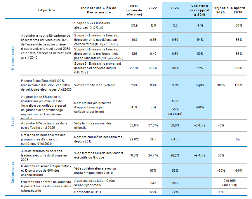 Note2 : En 2023, les émissions liées au déplacements quotidiens et professionnels des collaborateurs ont augmenté par rapport à 2022 sous l’effet du retour progressif au bureau et aux voyages post-pandémie.