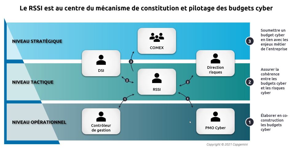Cette activité peut aboutir à la création d’un rôle dédié dont les compétences allient sécurité et finance en proximité des CIOs et CFOs. L’articulation de cet exercice dans le temps avec la réévaluation de la stratégie IT est aussi importante, il convient donc d’aligner le calendrier pour plus d’efficacité.