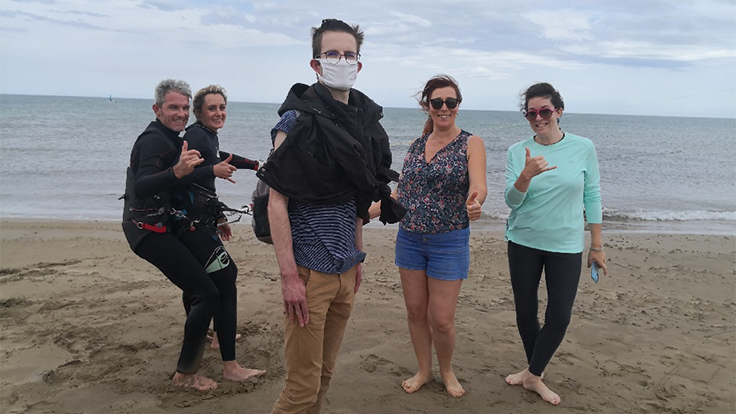Yann Déjou, fondateur de l’association et moniteur diplômé d’état de kitesurf, développe depuis 2014 et en exclusivité mondiale le Tandem Handikite, une activité de kitesurf dédiée aux personnes en situation de handicap.
