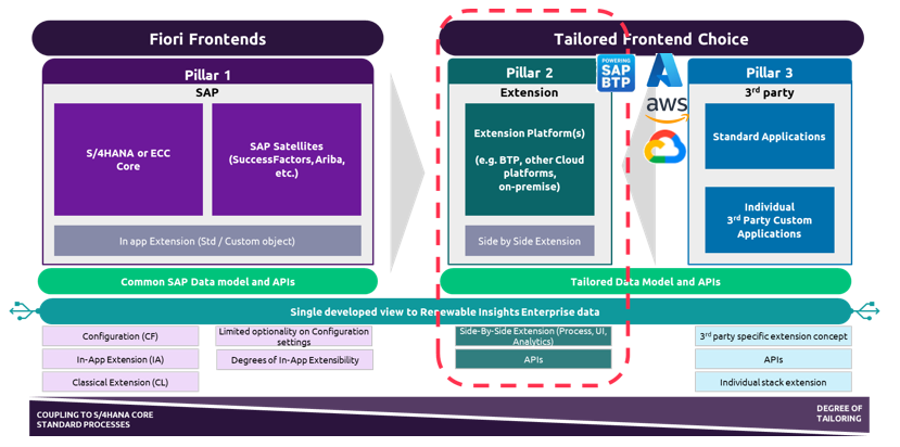 To accelerate the journey to S/4HANA Cloud, the RISE with SAP solution packages up key products, SAP BTP capabilities, services, and tools to help you deliver on your cloud-enabled digital transformation. RISE with SAP also supports industry-specific business needs in various geographies and regulatory requirements.  And to move to the cloud with confidence, leveraging the expertise of a trusted partner like Capgemini can prove critical.  Capgemini approaches SAP S/4HANA cloud transitions with a Multi-Pillar Solution Architecture (MPSA) strategy: the first pillar contains common SAP data models and a fit-to-standard approach on business processes and functionality to develop an architecture that is ready for cloud and as-a-service models at the core of an organisation; the second pillar serves as the extension platform, powered by SAP BTP, to extend the core system from pillar 1 and integrate and extend the applications from pillar 3, which houses all the third-party standard and individual custom applications running on hyperscalers.
