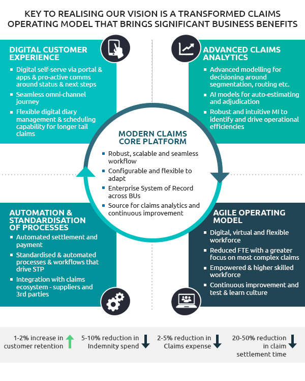 • Exploiting digital capabilities to cut indemnity spend by up to 10% and claims cost by up to 5%