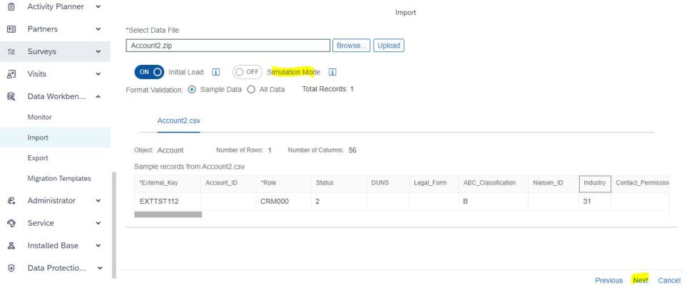 Note: It is recommended to select the simulation mode when loading data for the first time. Simulation mode will ensure no errors appear during the import.