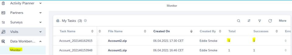 Here you can see the actual number of record(s) successfully loaded or failed.