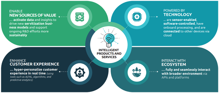 “Intelligent products are smart, connected, software-enabled products that can be continuously improved using real-time feedback. The data they generate and collect can enable organisations to offer intelligent services, leading to new servitisation-based business and revenue models.” – Capgemini Research Institute