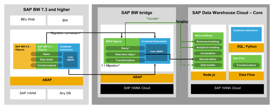 The SAP BW Bridge allows customers to reuse, migrate and convert their existing models, transformations and customisations in SAP Data Warehouse Cloud to accelerate data-to-value and capitalise on the existing experience with SAP BW.