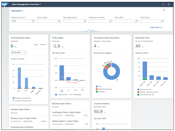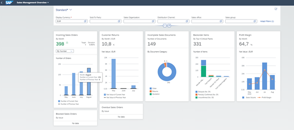 Overview pages are a type of lightweight dashboard that shows statuses of different SAP processes for an organisation. It is a starting point where a user can analyse the health of a business and drill into the details to see the underlying data that makes up the dashboard.