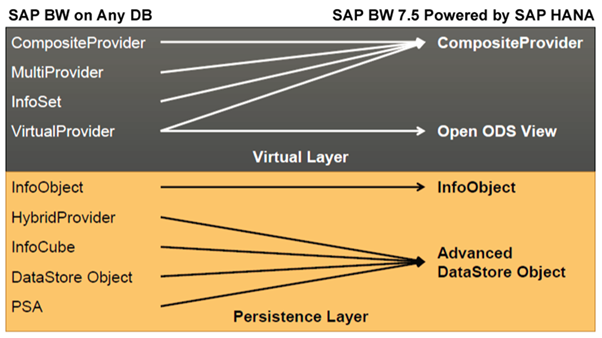 SAP BW modelling has been simplified and optimised for HANA since SAP 7.5 powered by SAP HANA.