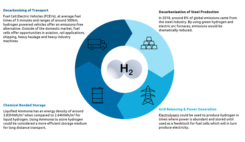 Use cases of hydrogen exist in industries that have limited alternative options to fossil fuels. The development of a hydrogen economy is crucial to meeting long term net zero targets for these industries. There are two connected opportunities in decarbonising these industries, firstly low-carbon hydrogen replacing currently used grey and brown hydrogen, and secondly in applying new decarbonisation technologies. It should be considered if these use cases would be a better use of hydrogen to help the UK achieve its Net Zero goals, over utilising hydrogen for heating.