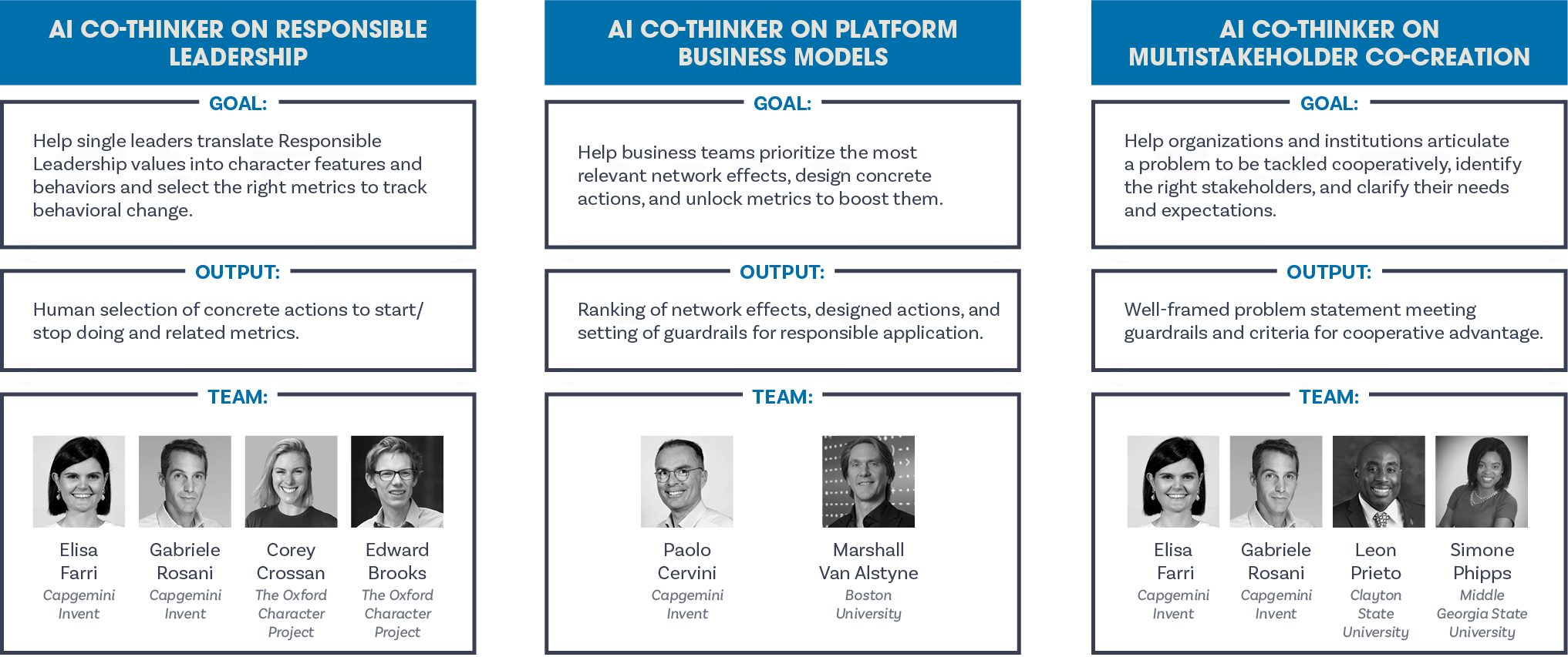 To fill this gap, The Management Lab by Capgemini Invent joined forces with leading management thinkers, who are part of the unique Thinkers50 community, to develop AI Co-Thinker prototypes. The values guiding our journey are curiosity, collaboration, discovery, and the pursuit of making good, responsible management achievable for everyone.