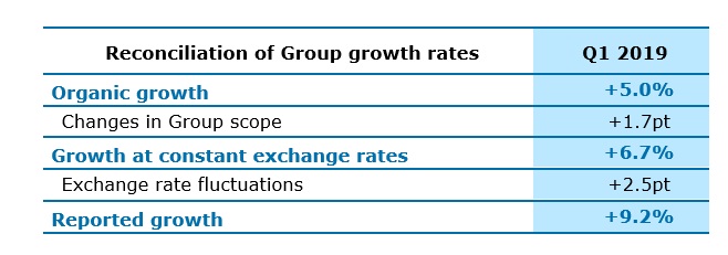 Organic growth, or like-for-like growth, in revenues is the growth rate calculated at constant Group scope and exchange rates. The Group scope and exchange rates used are those for the reported period. Exchange rates for the reported period are also used to calculate growth at constant exchange rates.