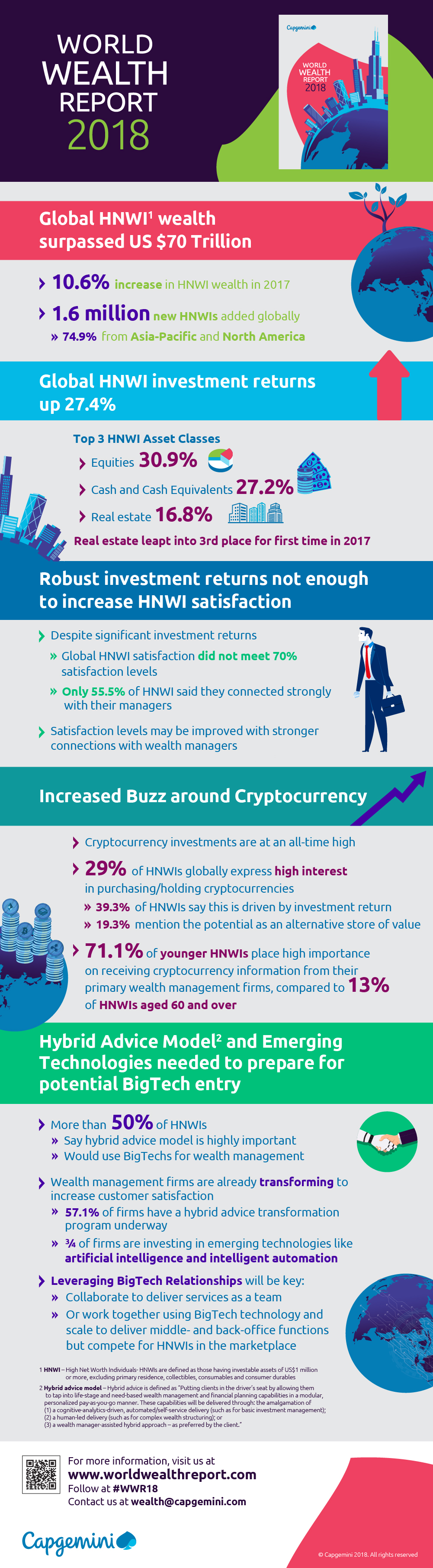 Capgemini’s World Wealth Report 2018: Global high net worth individual wealth surpasses US$70 trillion for the first time