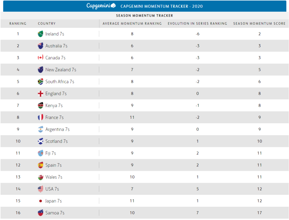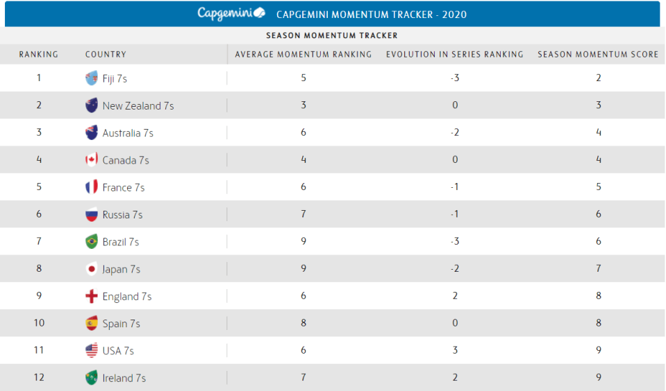 Here is a snapshot of how the season momentum tracker table looks after Canada7s: