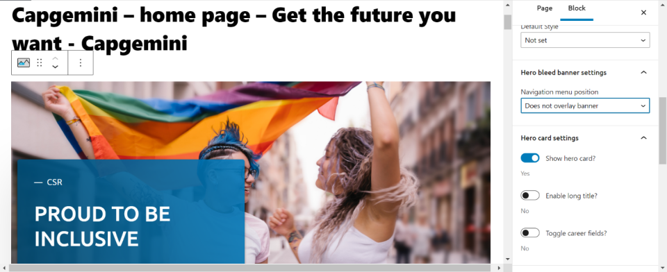 The block is the combination of multiple Hero blocks including Hero Picture Card and Hero (Homepage) data from the Client Stories post-type pages.