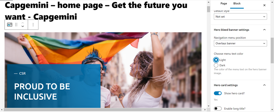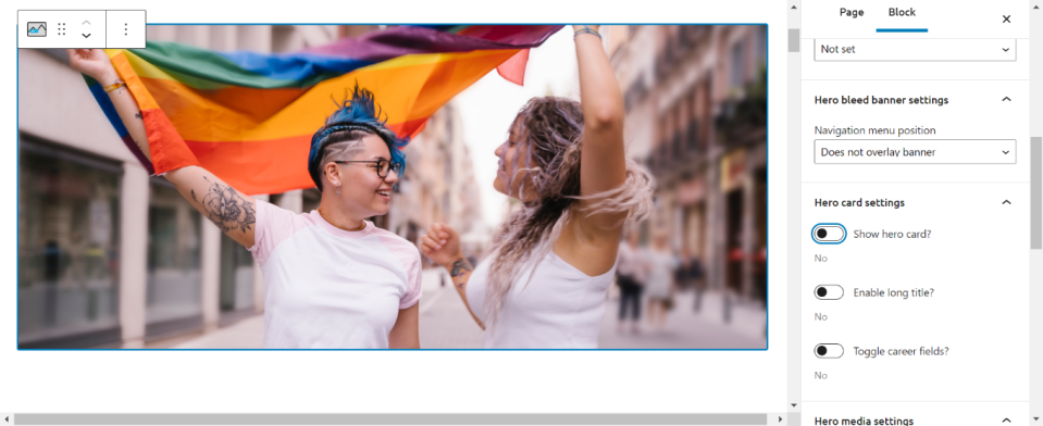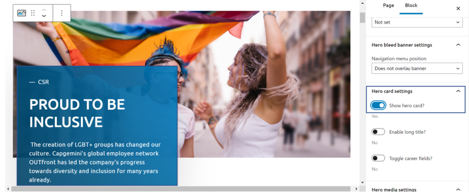 • You can increase the length of the title using the Enable long title toggle and can increase the area of the media using the Enable full-screen media toggle.