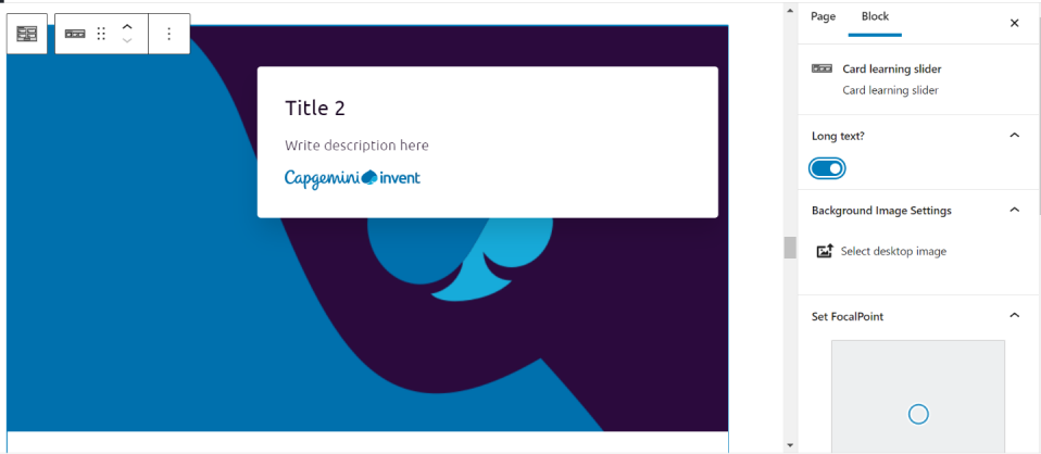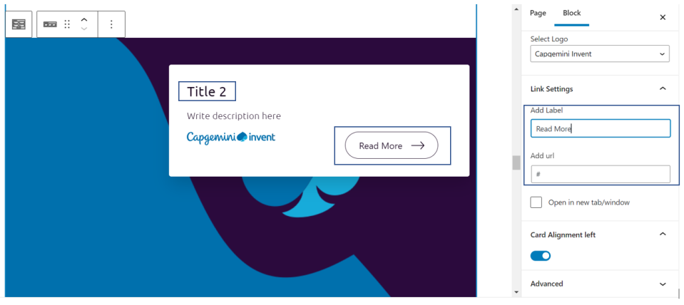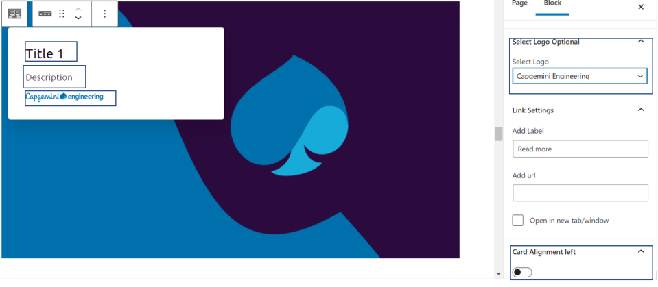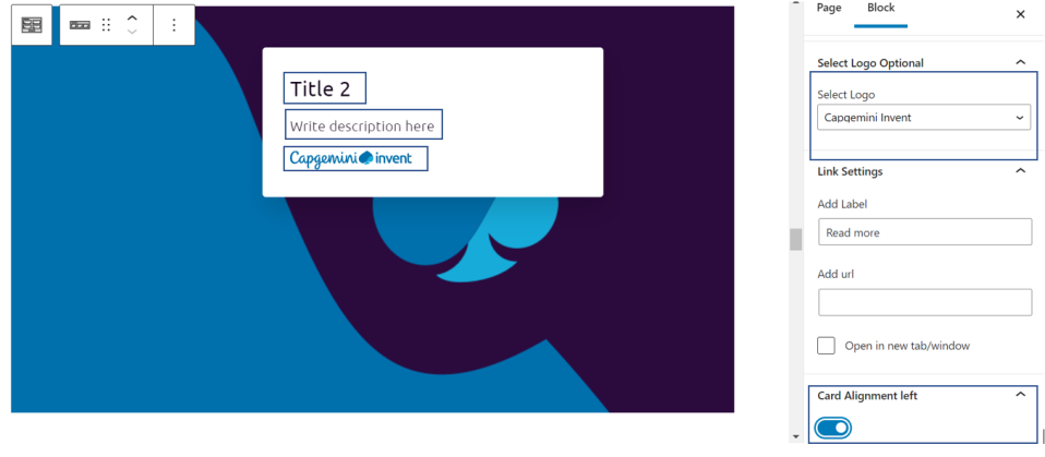The block is used to display the content specifically the title and description in card format. Using the block you can add multiple cards aligned either on the right-hand side or the left-hand side as per your requirement.