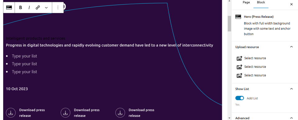 This block can be used for client stories, research and insights, resources and events. Apart from this, it can be used as a no-functionality hero block.