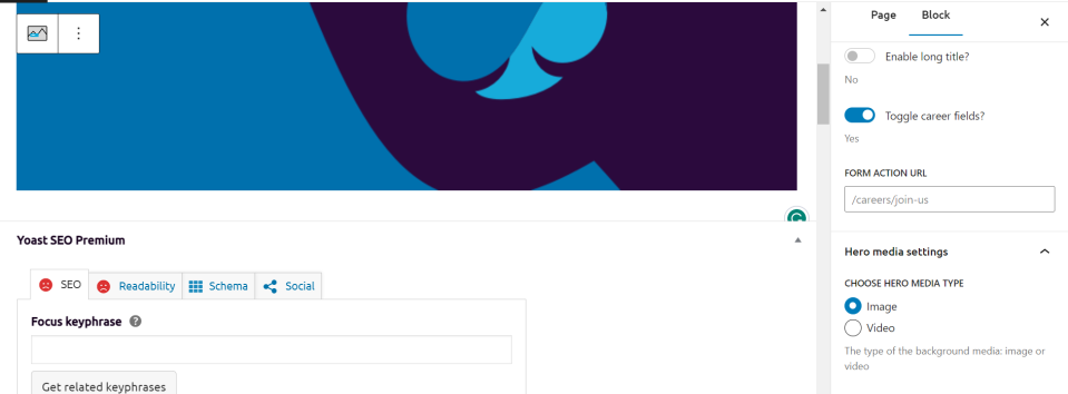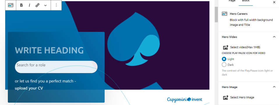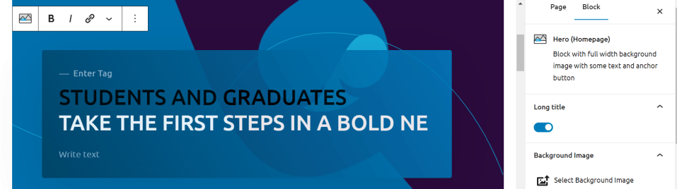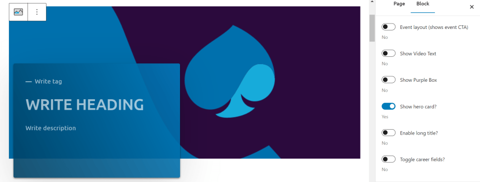 Reusable Hero Block is one of the most used blocks while creating any content type. There are 7 other hero blocks as well that you can use and some are content-specific, but Hero Reusable is the most versatile block that can fulfil your expectations.