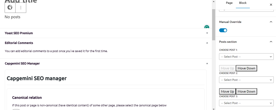 • In case you want to select the insights of your own choice then you can opt-in for manual override which can help you select posts from the dropdown and you can add upto 4 posts
