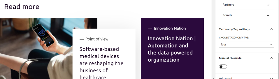 This block enables you to add the latest insights that are available on the website or are pre-built in the backend