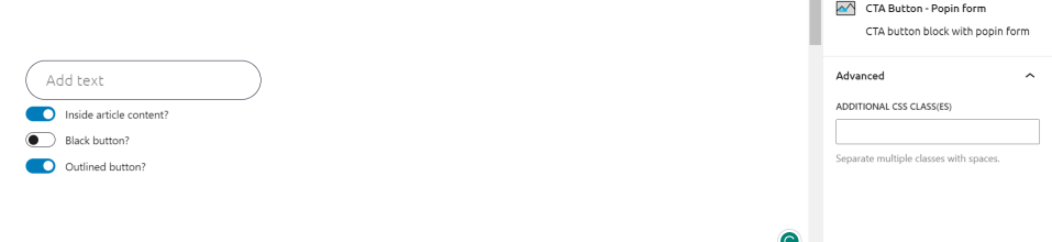 • You can further align the CTA button and the toggles allow you to outline or color the button and get you the button inside the article content block